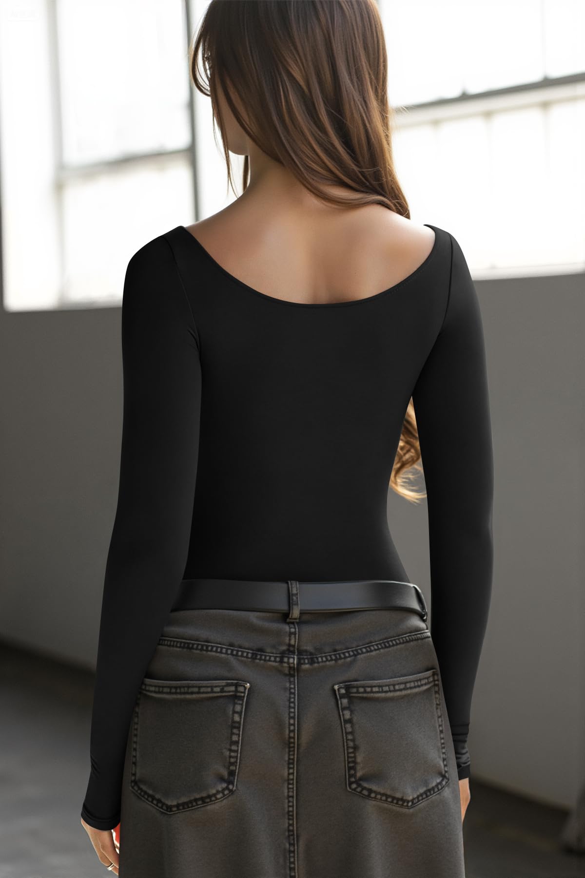 OQQ Bodysuits for Women Boatneck Long Sleeve Basic Stretch Classic-Fit Tops Sexy Bodysuit